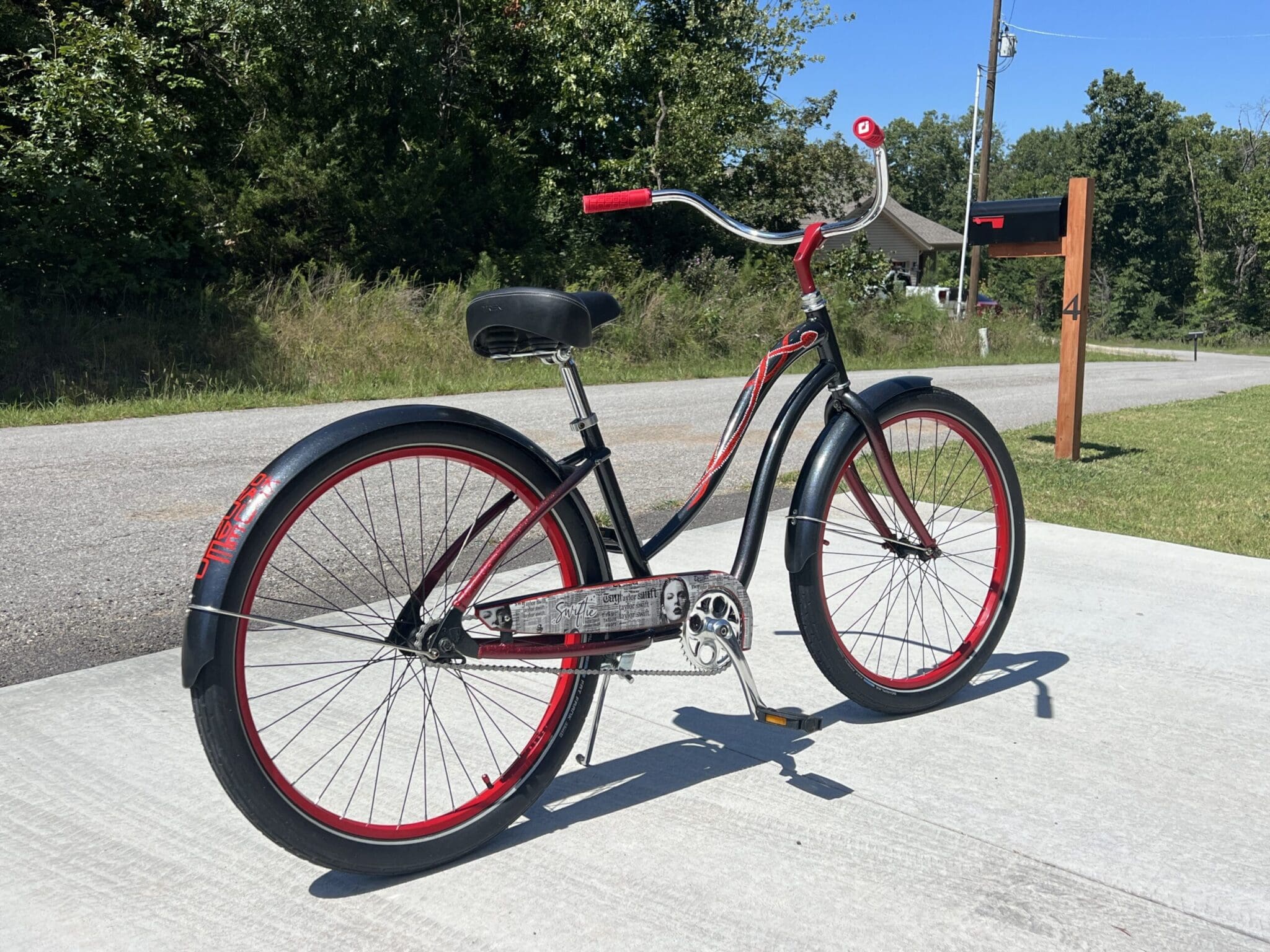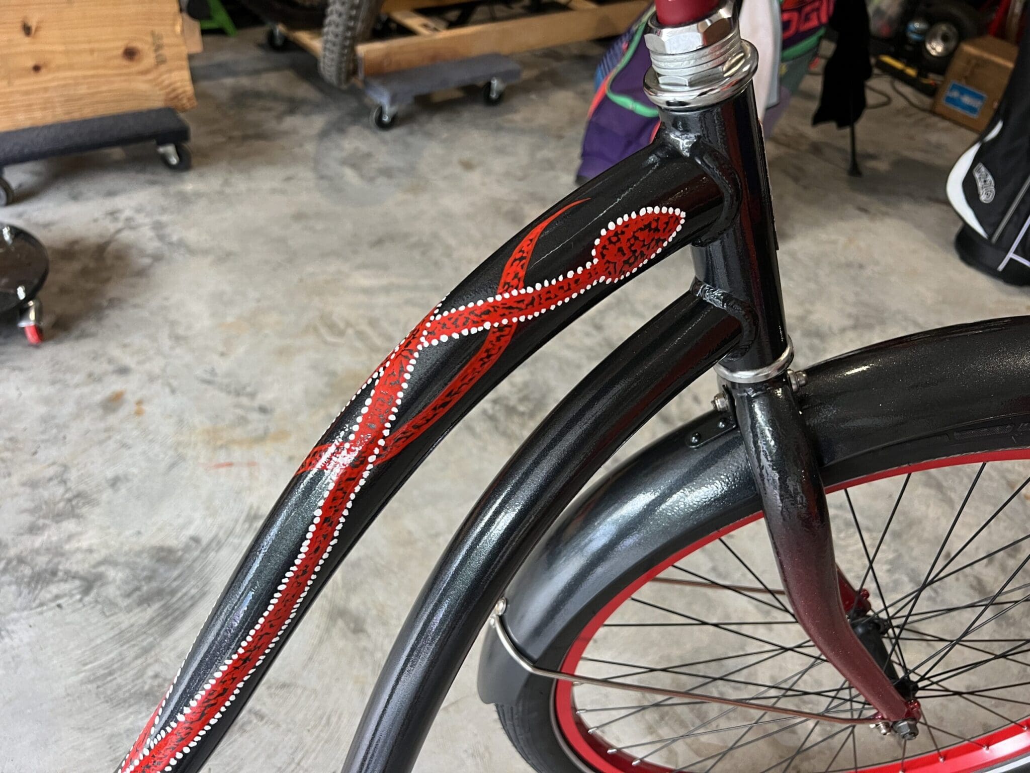 I had so much fun restoring and fixing up bikes, trikes, and tiny tractors for all the niblings that I decided to try my hand at a full size bike. My sister in law Cara lives in florida where it’s flat and cruisers are super popular so I decided to build one for her with the theme of her favorite artist: Taylor Swift! After getting Justin in on the scheme, he sleuthed what her favorite TS album was and I got to work!